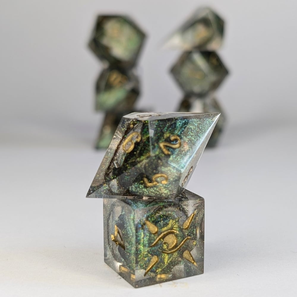 *Please note: As they are handmade, there is always the possibility of imperfections such as mould marks and micro scratches. These are mostly unnoticeable though and dice descriptions will only state if there are any bigger flaws.*
